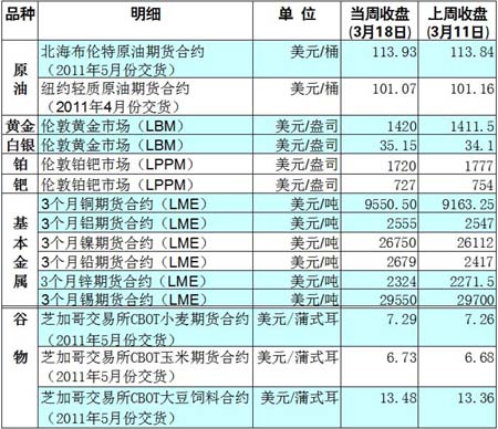國際大宗商品期貨價格明細(xì)表[2011-03-14]