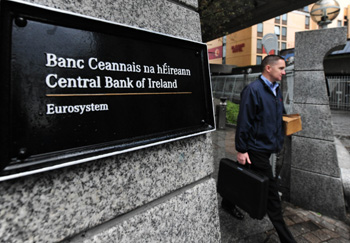 希臘首先爆發(fā)的歐洲主權(quán)債務危機以來,嚴重沖擊歐元穩(wěn)定和歐元區(qū)經(jīng)濟復蘇。去年11月,債臺高筑的愛爾蘭也不得不接受外部援助。圖為在愛爾蘭首都都柏林,一名男子離開愛爾蘭中央銀行。新華社記者