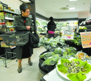 3月25日,一位日本婦人在東京一家超市選購蔬菜。日本核電站發(fā)生爆炸事故以來,各國出于食品安全的考慮,紛紛暫停從日本進(jìn)口部分食品和農(nóng)產(chǎn)品。 |