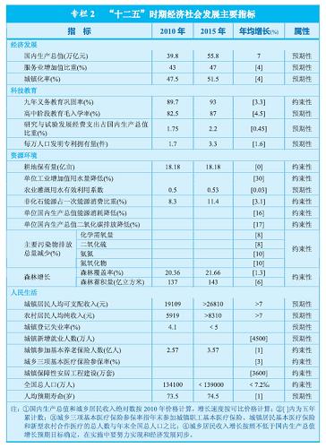 圖表:專欄2 “十二五”時期經(jīng)濟社會發(fā)展主要指標