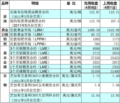 國際大宗商品期貨價格明細表[04-11]