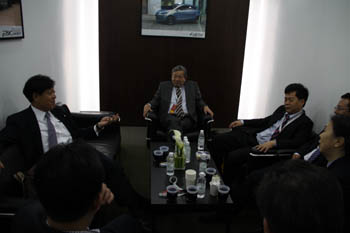 上海國(guó)際車(chē)展上,華菱重卡董事長(zhǎng)劉漢如(右一)和三菱自動(dòng)車(chē)工業(yè)株式會(huì)社社長(zhǎng)益子修(左一)會(huì)晤,尋求合作機(jī)會(huì)和未來(lái)共同發(fā)展空間。陳曉/攝 |