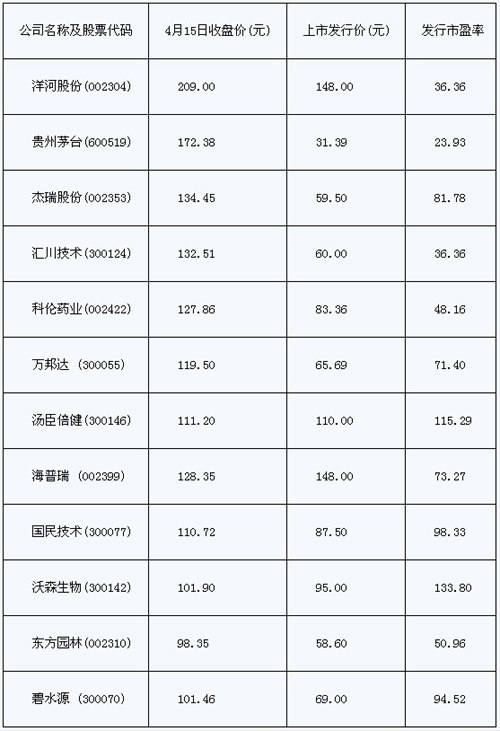 我們發(fā)現(xiàn),以截止到4月19日收盤價超出一百元的11只股票為例,部分百元股如海普瑞、國民技術、沃森生物、碧水源等自發(fā)行以來就已經(jīng)連續(xù)陷入調整態(tài)勢,股價不能得到有力的支撐。高成長性不能得到延續(xù),股價未見起色,這里有公司經(jīng)營層面的問題,也有市場投資者認可的問題,還有新股發(fā)行機制存在的問題。