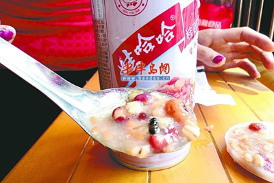 4月中旬,家住城陽的孫女士從商場里面買了兩瓶娃哈哈桂圓蓮子八寶粥,當(dāng)天下午3點(diǎn)多下班后,孫女士拿出一瓶喝光了!澳菚r(shí)候很餓,就當(dāng)飯吃了,喝到第二瓶一半的時(shí)候,用湯匙一舀,里面竟然有只很大的蒼蠅,這只蒼蠅還不是一般的大,是那種綠豆蠅。當(dāng)時(shí)朋友在家里,告訴我說這么惡心個(gè)事不能這么完了,我覺得也是,雖然不會(huì)造成太大的危害,但是真是很惡心。”