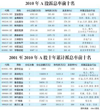 據(jù)統(tǒng)計,2009年前,A股上市公司累計分紅8892.1億元左右,累計實現(xiàn)凈利潤43686.85億元,派息率平均為20%,電力、鋼鐵、高速公路企業(yè)派息率最高,介于30%-50%之間。但總體看,我國上市企業(yè)分紅積極性不高,現(xiàn)金分紅的更少,連續(xù)10年從不分紅的企業(yè)有100多家,每年近半數(shù)企業(yè)年報不提分紅之事,A股“圈錢市”惡名遠揚,不少上市公司成為“鐵公雞”。