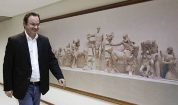 希臘財(cái)長帕帕康斯坦丁努出席了7日舉行的歐元區(qū)財(cái)長會議。此次會議未討論債務(wù)重組問題,但明確了希臘需要進(jìn)一步的調(diào)整計(jì)劃來度過債務(wù)危機(jī)。 (路透社) |