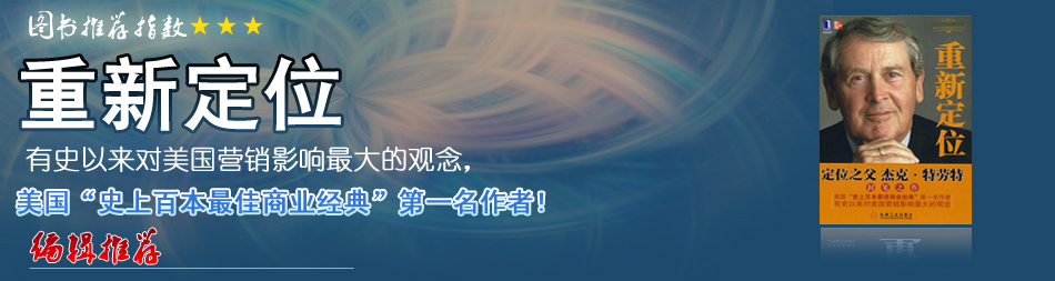 《重新定位》是特勞特先生40年商業(yè)經(jīng)驗的結(jié)晶,是對定位理論的完善和創(chuàng)新。作為打造品牌的重要理論,此書的出版正逢中國企業(yè)亟須品牌的時候,對中國企業(yè)而言可謂及時雨。而中國巨大的市場潛力,也正好可以讓“重新定位”實現(xiàn)其意義,因為無論是“定位”還是“重新定位”,都需要踐行才能體現(xiàn)價值…[詳細(xì)]