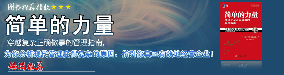| 《簡(jiǎn)單的力量》回歸常識(shí),推崇簡(jiǎn)單,從管理、領(lǐng)導(dǎo)、人員、市場(chǎng)等幾大方面給出“極簡(jiǎn)主義”的建議。不過(guò)需要指出的是,這里的“簡(jiǎn)單”可不是簡(jiǎn)約、單調(diào),而是清楚明白、突出要點(diǎn)、直達(dá)心理。 |
