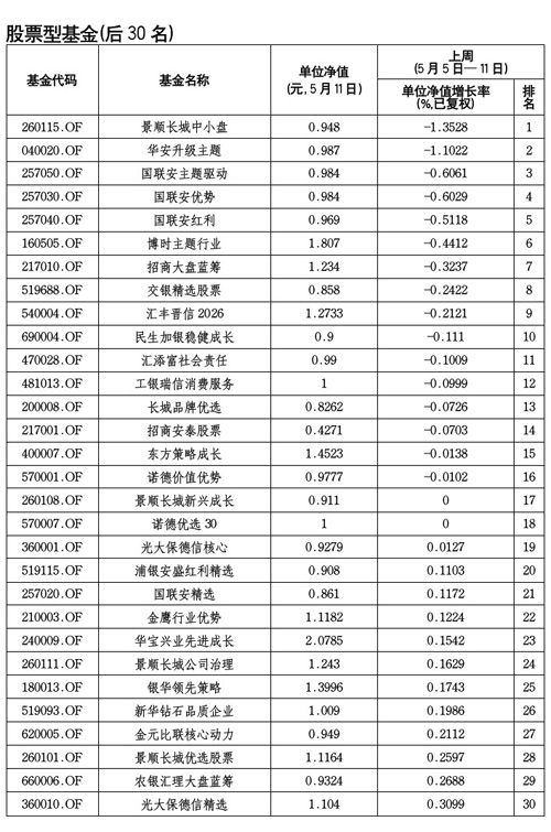 景順長(zhǎng)城基金管理有限公司旗下,2011年3月成立的景順長(zhǎng)城中小盤以-1.35%的凈值增長(zhǎng)率成為本周(5月5日-11日)股票型基金收益倒數(shù)第一,其今年年漲幅為-5.2%。