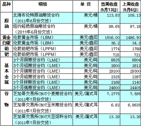國際大宗商品期貨價格明細(xì)表[2011-05-16]