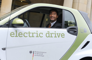 5月16日,德國新經(jīng)濟(jì)部長勒斯勒爾在柏林試駕一輛電動(dòng)車。 德國總理默克爾當(dāng)日宣布,為了讓德國在未來電動(dòng)汽車市場(chǎng)能居主導(dǎo)地位,政府未來幾年內(nèi)將通過加倍投入研發(fā)資金、稅務(wù)優(yōu)惠和給使用電動(dòng)汽車提供“特權(quán)”便利三管齊下的措施,助推德國的電動(dòng)汽車發(fā)展計(jì)劃。