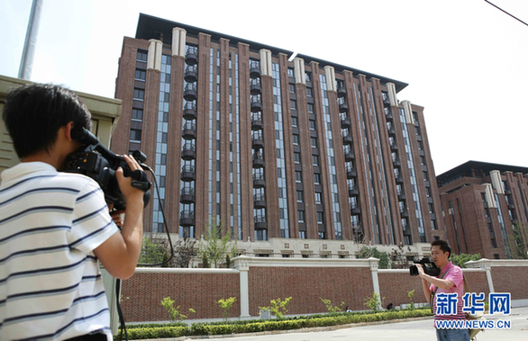 2011年5月25日北京出現(xiàn)單價(jià)30萬樓盤5月25日,媒體記者在北京東釣魚臺家園小區(qū)門前拍攝采訪。分析人士指出,在嚴(yán)厲調(diào)控之下,北京豪宅價(jià)格逆勢異常高漲,十分值得關(guān)注。新華社發(fā)(李方宇