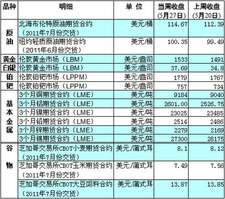 國際大宗商品期貨價格明細(xì)表[2011-05-30]