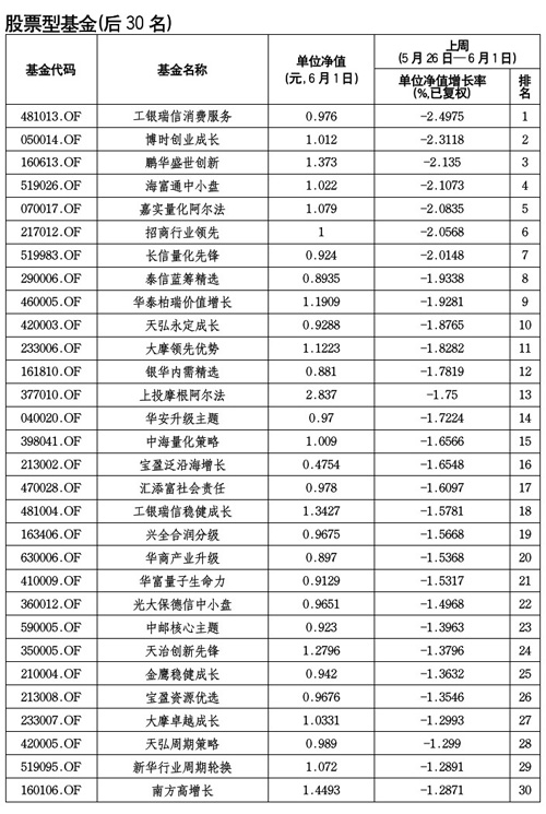 工銀瑞信基金管理有限公司旗下,2011年4月成立的工銀瑞信消費服務(wù)以-2.50%的凈值增長率成為本周(5月26日-6月1日)股票型基金收益倒數(shù)第一,其今年年漲幅為-2.4%。