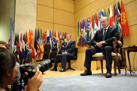 6月15日,在瑞士日內(nèi)瓦萬國宮,俄羅斯總理普京出席第100屆國際勞工大會并發(fā)言。他在講話中指出,當(dāng)前的俄羅斯經(jīng)濟已恢復(fù)至危機前2/3的水平,明年或能達(dá)到危機前水平。他還稱,目前是全球第六大經(jīng)濟體的俄羅斯制定了一個雄心勃勃的計劃,力爭10年內(nèi)躋身全球五大經(jīng)濟體行列。