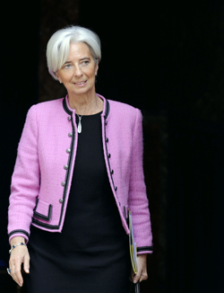 從5月30日起,法國(guó)女財(cái)長(zhǎng)克里斯蒂娜·拉加德成了不折不扣的“空中飛人”。在獲得歐美國(guó)家廣泛支持下,拉加德將公關(guān)重心放在新興市場(chǎng)經(jīng)濟(jì)體:從巴西到印度再到中國(guó),之后在葡萄牙里斯本會(huì)晤出席非洲開發(fā)銀行年會(huì)的非洲財(cái)經(jīng)官員,緊接著馬不停蹄地趕赴沙特阿拉伯參見國(guó)王和財(cái)政大臣,次日又出現(xiàn)在開羅。鎂光燈下,優(yōu)雅的拉加德毫無倦意,與東道主埃及財(cái)長(zhǎng)薩米爾·拉德萬親切交談。