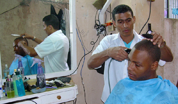 在古巴從事理發(fā)的個(gè)體經(jīng)營者。記者 殷永建