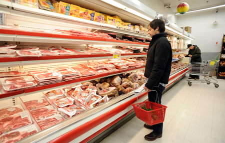 圖為一位男子在紐約布魯克林的一家超市里購買食品。