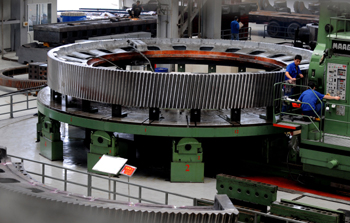 在河南洛陽中信重工集團(tuán)大型齒輪生產(chǎn)車間,工人在加工產(chǎn)品。記者
