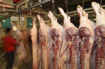 國家統(tǒng)計局公布數(shù)據(jù)顯示,6月份豬肉同比漲57.1%,影響CPI上漲約1.37個百分點。新華社發(fā)(許叢軍攝) |
