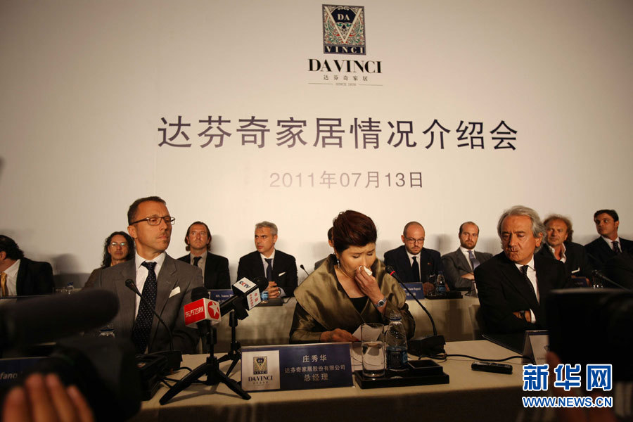 13日,“達芬奇”首度于北京召開新聞發(fā)布會,并在上海、廣州、杭州、重慶、成都、深圳等6地設立分會場進行同步直播,“達芬奇”欲再次強調自己的“意大利身份”時,卻因為一位消費者起身大聲質疑并摔門而去而引發(fā)騷動。隨后,“達芬奇”總經理潘莊秀華含淚痛哭,并間接承認其與東莞長豐公司有過三次合作。她還無意中說出,達芬奇旗下代理的美國品牌好萊塢系列產自東莞。