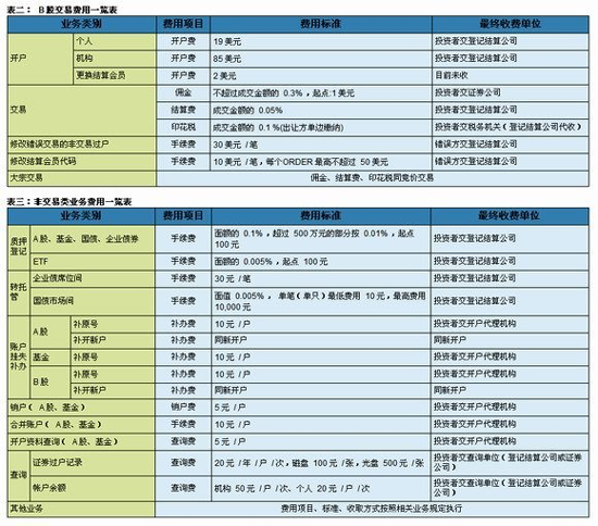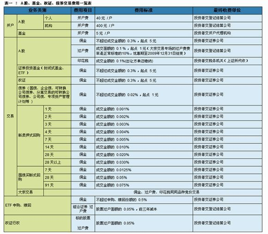 滬市證券交易及相關(guān)業(yè)務(wù)費(fèi)用表