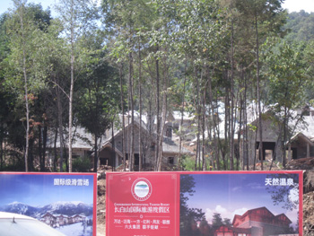 除了高爾夫球場和別墅群外,該項(xiàng)目還配套有大批豪華酒店,在長白山國際旅游度假區(qū)南區(qū)將建成9座星級酒店,這些高檔酒店群占地約1平方公里,一期將建設(shè)6個酒店,分別是六星級柏悅酒店、威斯汀酒店,五星級凱悅酒店、喜來登酒店,洲際四星級假日酒店和洲際公寓式酒店。記者走訪酒店建筑工地現(xiàn)場發(fā)現(xiàn),在一期“長白山霞慕尼”別墅群對面,酒店群已初具雛形。