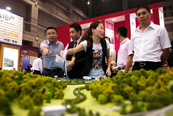 9月15日,參觀者在房展會(huì)上咨詢。 當(dāng)日,2011北京秋季房地產(chǎn)展示交易會(huì)開幕。受限購政策影響,加之開發(fā)商降價(jià)幅度較小,購房者在選擇時(shí)觀望態(tài)度明顯。新華社發(fā)(白禹攝) |