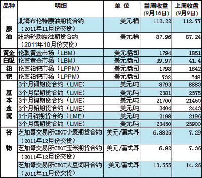 國際大宗商品期貨價(jià)格明細(xì)表[2011-09-19]
