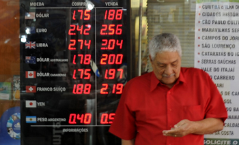 圖為巴西里約熱內(nèi)盧的一名行人經(jīng)過(guò)電子匯率顯示牌。法新社 |