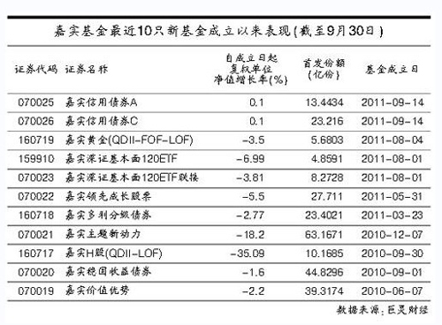 由于凈值接連受挫,嘉實(shí)旗下的十只新基金受傷程度也在不斷加重。
