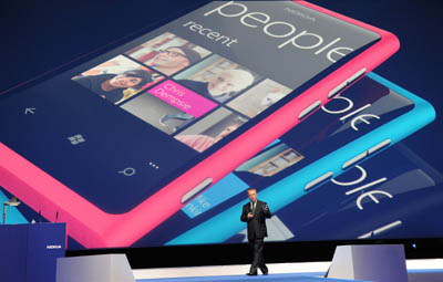 10月26日,在英國倫敦舉行的新聞發(fā)布會上,諾基亞總裁兼首席執(zhí)行官斯蒂芬·埃洛普手握諾基亞新款Lumia智能手機發(fā)表講話。當(dāng)天,諾基亞首次發(fā)布應(yīng)用微軟視窗系統(tǒng)的智能手機。新發(fā)布的兩款智能機將于圣誕節(jié)前登陸歐洲各大主要手機市場。