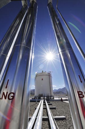 據(jù)中石油青海油田總工程師孫凌云介紹,為加快推進西藏天然氣利用,中石油啟動了西藏城市燃氣工程項目。該項目總投資1.07億元,分三期建設。拉薩天然氣站作為一期工程,建設規(guī)模為每天輸氣15萬立方米,主要包括一座2000立方米液化天然氣儲罐、兩座加氣站,以及氣化設施及城市管網(wǎng)等。氣源是接收中石油格爾木液化天然氣工廠提供的液化天然氣(LNG)。