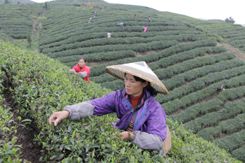 貴定茶農(nóng)正在采摘春茶。羅慶榮/攝 |