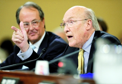 11月1日,在美國首都華盛頓國會山,共和黨前聯(lián)邦參議員艾倫·辛普森出席削減赤字特別委員會舉行的聽證會。 美國多位財政和預算問題專家當日表示,削減美國政府高企的財政赤字刻不容緩,由美國民主黨和共和黨議員組成的有減赤“超級委員會”之稱的削減赤字特別委員會應當采取果斷、大膽的行動來減少美國赤字以穩(wěn)定市場信心。