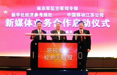 11月8日,南京軍區(qū)空軍通信系統、中國移動通信集團江蘇有限公司和新華社經濟參考報社,在南京舉行三方新媒體業(yè)務合作啟動儀式。