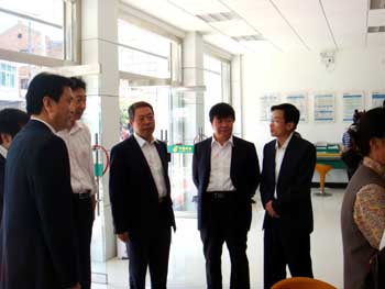 漢中市郵政局李成仁局長(右三)前往基層郵政支局調(diào)研。 |