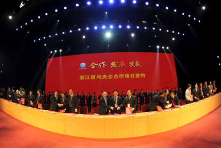 圖為浙江省與央企合作項(xiàng)目簽約現(xiàn)場(chǎng)。