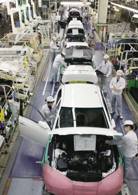 豐田汽車公司組裝生產(chǎn)線上的藍領工人