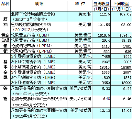國(guó)際大宗商品期貨價(jià)格明細(xì)表[2012-01-06]