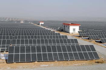 近年來(lái),寧夏回族自治區(qū)利用優(yōu)良的光照條件大力發(fā)展光伏發(fā)電產(chǎn)業(yè)。圖為寧夏發(fā)電集團(tuán)紅寺堡光伏電站的太陽(yáng)能電池板。新華社記者 彭昭之/攝 |