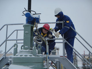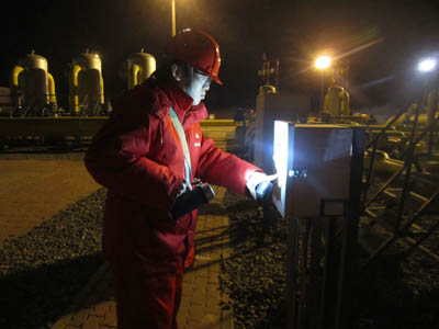 中亞天然氣管道員工在現(xiàn)場巡檢。