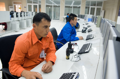 圖為土庫曼斯坦及中國員工在阿姆河天然氣公司控制中心進行生產(chǎn)調(diào)度。