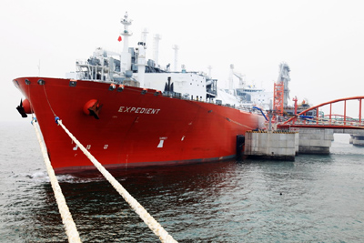 LNG運輸船在大連LNG接收站靠港。