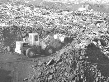 在礦坑附近,進(jìn)出堆煤場的道路上,煤灰和浮土有近半尺厚,運(yùn)煤車輛行駛在這種簡易道路上,有如船行水中,劈波斬浪。在沒有風(fēng)的情形下,礦區(qū)上空已籠罩在一團(tuán)“黑云”之中。據(jù)附近居民形容,當(dāng)有風(fēng)之時(shí),灰塵和煤塵隨風(fēng)飄揚(yáng),遮天蔽日,延綿數(shù)公里。