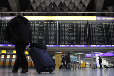 2月20日,旅客行走在德國(guó)法蘭克福機(jī)場(chǎng)內(nèi)。