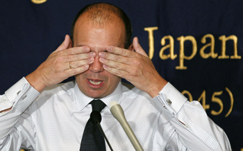 2011年10月中旬的一個(gè)下午,倫敦中心區(qū)維亞警局的柜式長(zhǎng)桌后,一名警官困惑地?fù)P起了眉毛。在他面前正站著一位身著大衣,系著領(lǐng)帶且談吐不俗的中年紳士。這位先生一頭短發(fā),黑色的發(fā)際線已經(jīng)開(kāi)始后退,兩眼稍嫌靠近,下巴大而圓。他咕噥著日本黑幫組織(theYakuza)的黑暗,和自己在東京破獲的一樁企業(yè)丑聞,并自稱(chēng)曾是一家全球性公司的總裁兼CEO,因?yàn)榻衣兑粯敦?cái)富蒸發(fā)案而遭遇解雇。根據(jù)來(lái)自新聞?dòng)浾吆蜕馍系幕锇榈南ⅲF(xiàn)在他有理由相信,自己可能被干掉。