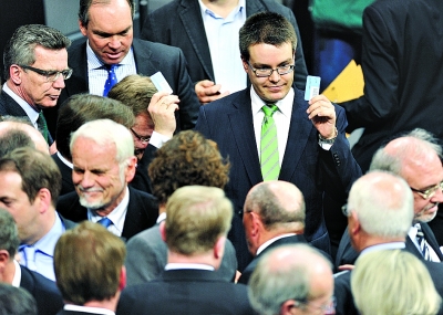 2月27日,在德國首都柏林的德國議會大廈,議員們進行投票。
