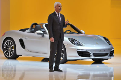 圖為保時捷公司總裁兼首席執(zhí)行官馬蒂亞斯·米勒介紹最新款保時捷Boxster S。