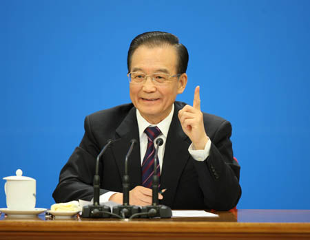 第十一屆全國人民代表大會第五次會議14日上午在人民大會堂閉幕。大會閉幕后,國務院總理溫家寶應大會發(fā)言人李肇星的邀請會見中外記者,并回答記者提問。溫家寶說,今年可能是最困難的一年,但也可能是最有希望的一年。人民需要政府的冷靜、果敢和誠信;政府需要人民的信任、支持和幫助。面對國際金融危機和歐債危機的蔓延、發(fā)展,關鍵是把我們自己的事情辦好。我將在最后一年“守職而不廢,處義而不回”,永遠同人民在一起。